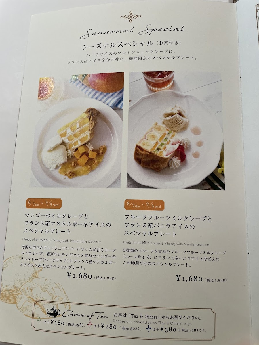 季節限定のミルクレープをご用意しています。※セットメニューもご用意しています